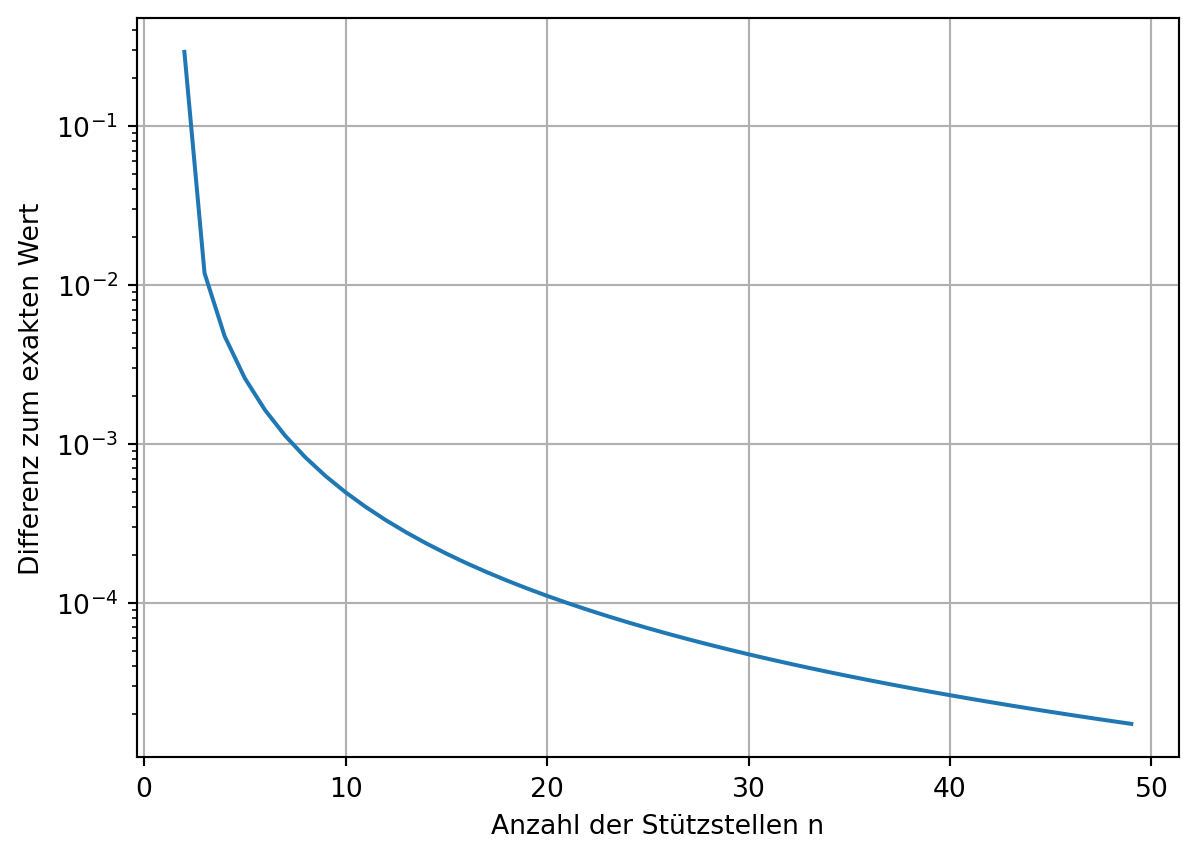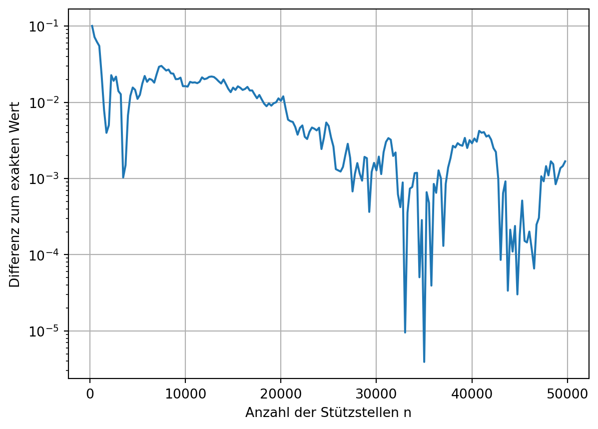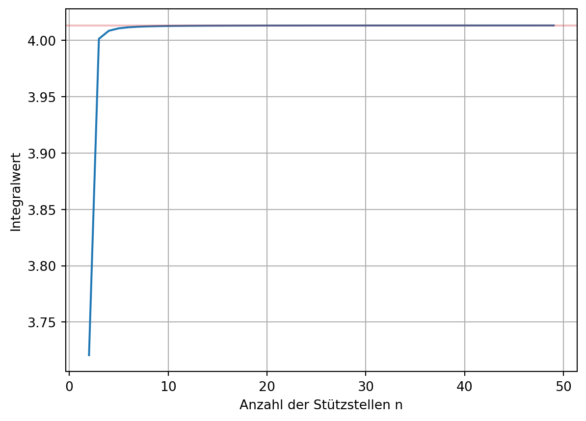 Für eine systematische Untersuchung des Konvergenzverhaltens, wird die Integrationsfunktion für verschiedene Anzahlen von Stützstellen aufgerufen.